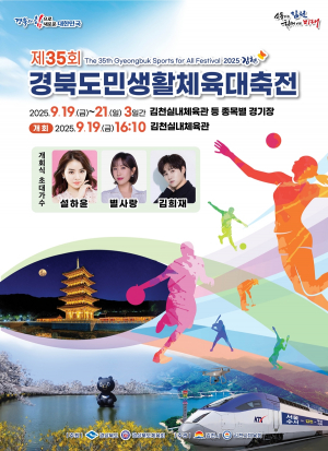 김천시는 오는 19일부터 21일까지 3일간 김천실내체육관 및 각 종목별 경기장에서 경북 생활체육 동호인들의 우정과 화합을 다지는 「제35회 경북도민생활체육대축전」이 열릴 예정이다. 이번 대회는 경상북도..